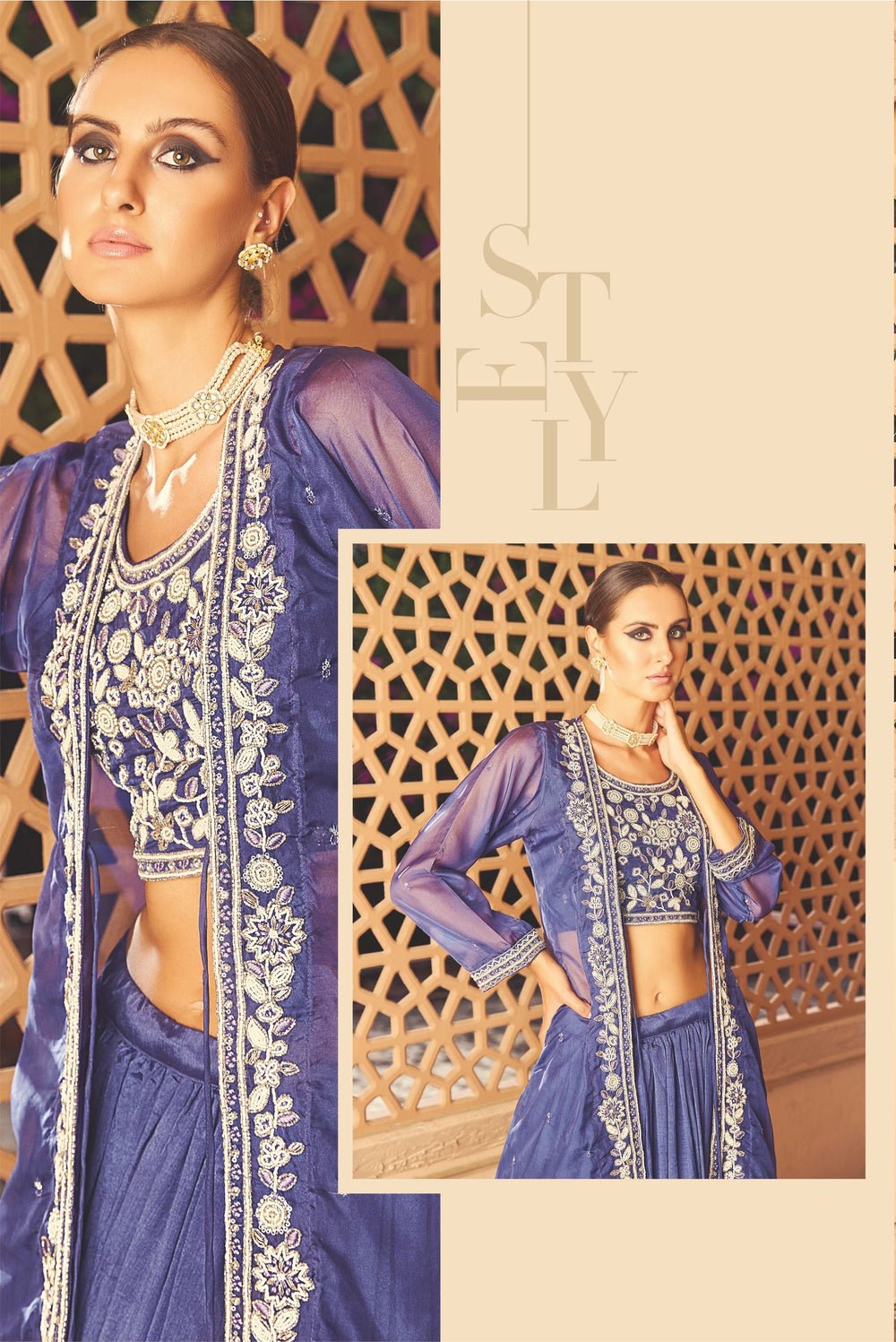 • Jacket: Sheer organza with delicate embroidery