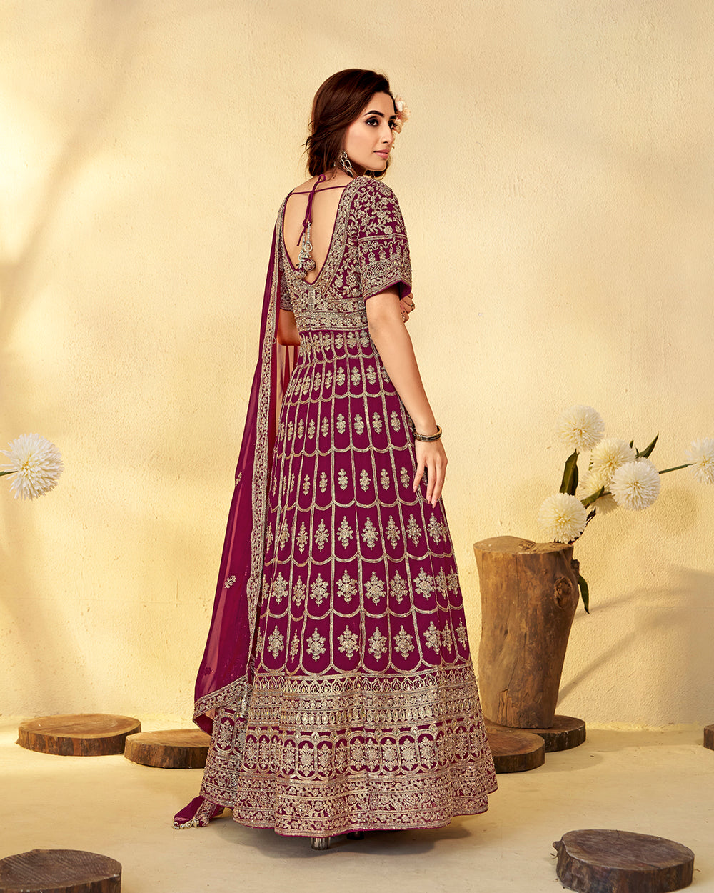 Step out in style with this elegant maroon Indo-Western suit, beautifully embellished with intricate gold motifs. The detailed embroidery on the bodice and the decorative patterns that flow down the kurta add a touch of traditional charm to this contemporary design.