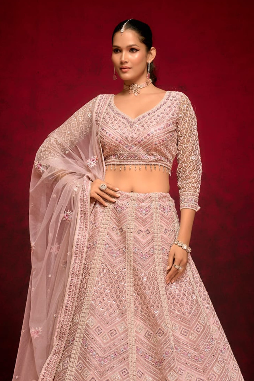 Blush Pink Embroidered Lehenga Choli with Delicate Detailing by B Girl