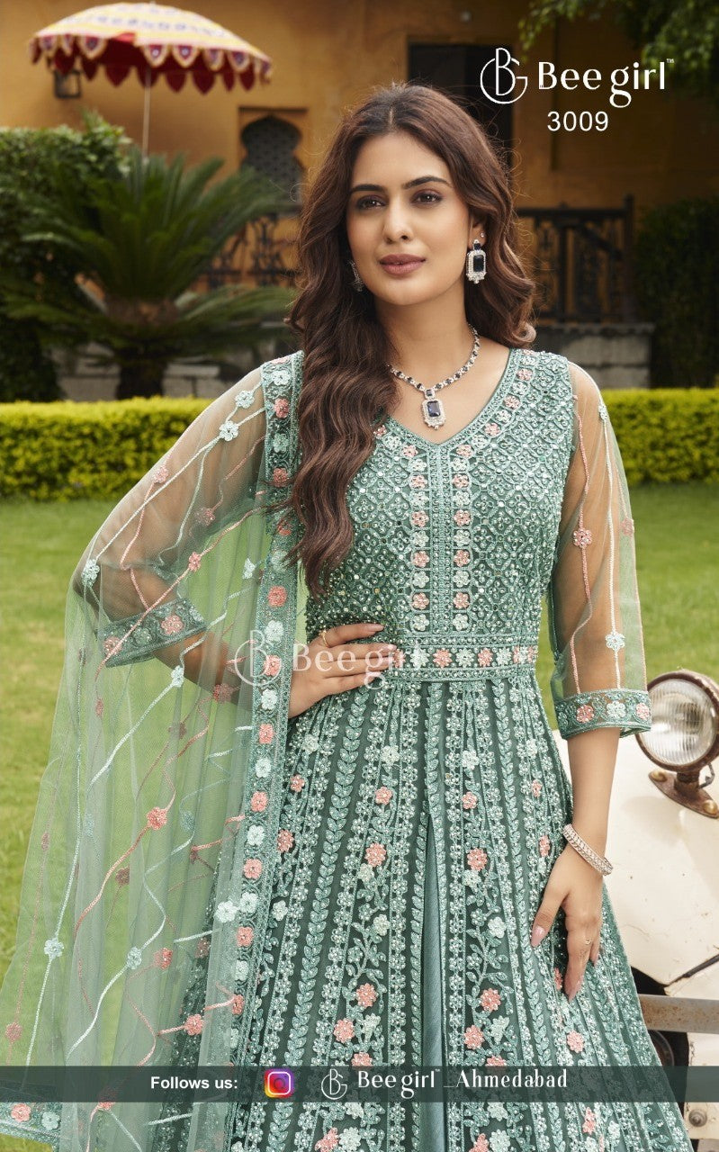 Elevate your style with this exquisite green Indo-Western outfit from B Girl. Featuring a perfect blend of traditional charm and modern elegance, this ensemble boasts intricate detailing and a flattering silhouette. The rich green hue adds a vibrant yet sophisticated touch, ideal for festive occasions, weddings, or special gatherings.
