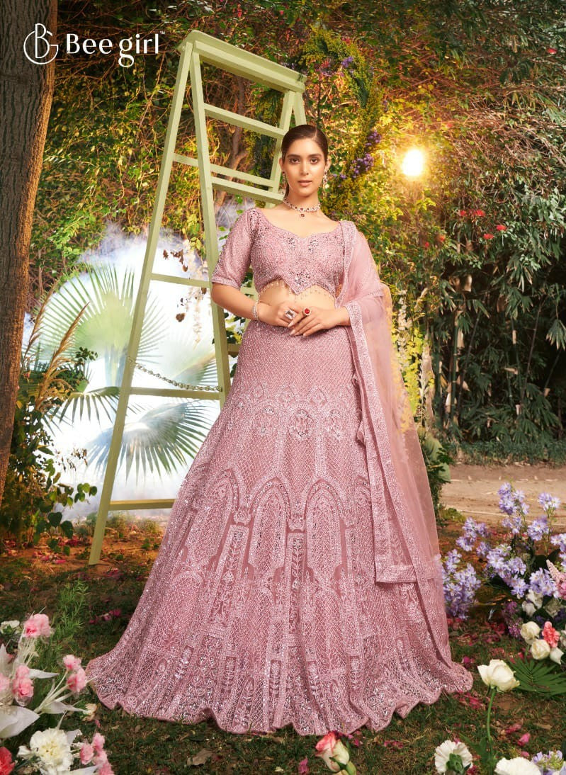 Embrace timeless elegance with this exquisite pink lehenga with choli from B Girl. Adorned with intricate embroidery and delicate embellishments, this vibrant ensemble exudes charm and sophistication. Perfect for weddings, festive celebrations, or special occasions, this attire ensures you make a captivating statement with every step.