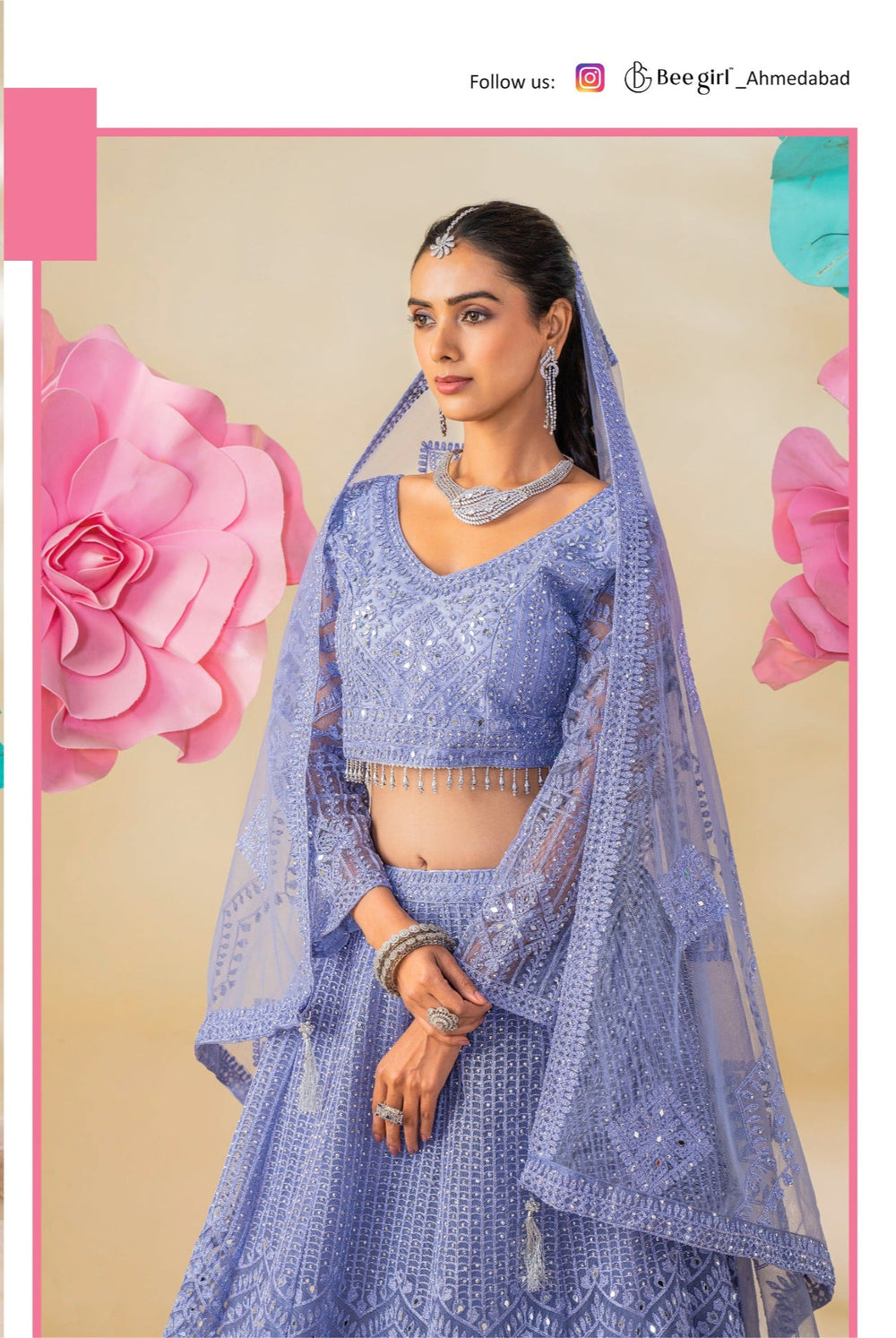 Gracefully crafted in soothing pastel tones, the Pastel Perfection Lehenga Set is a blend of elegance and charm. The intricately embroidered blouse features delicate sequins and threadwork that catch the light with every move. Paired with a flowy, voluminous skirt and a matching sheer dupatta with embellished borders, this ensemble exudes effortless sophistication. Perfect for daytime weddings, receptions, or any festive celebration where subtle glamour is the mood.