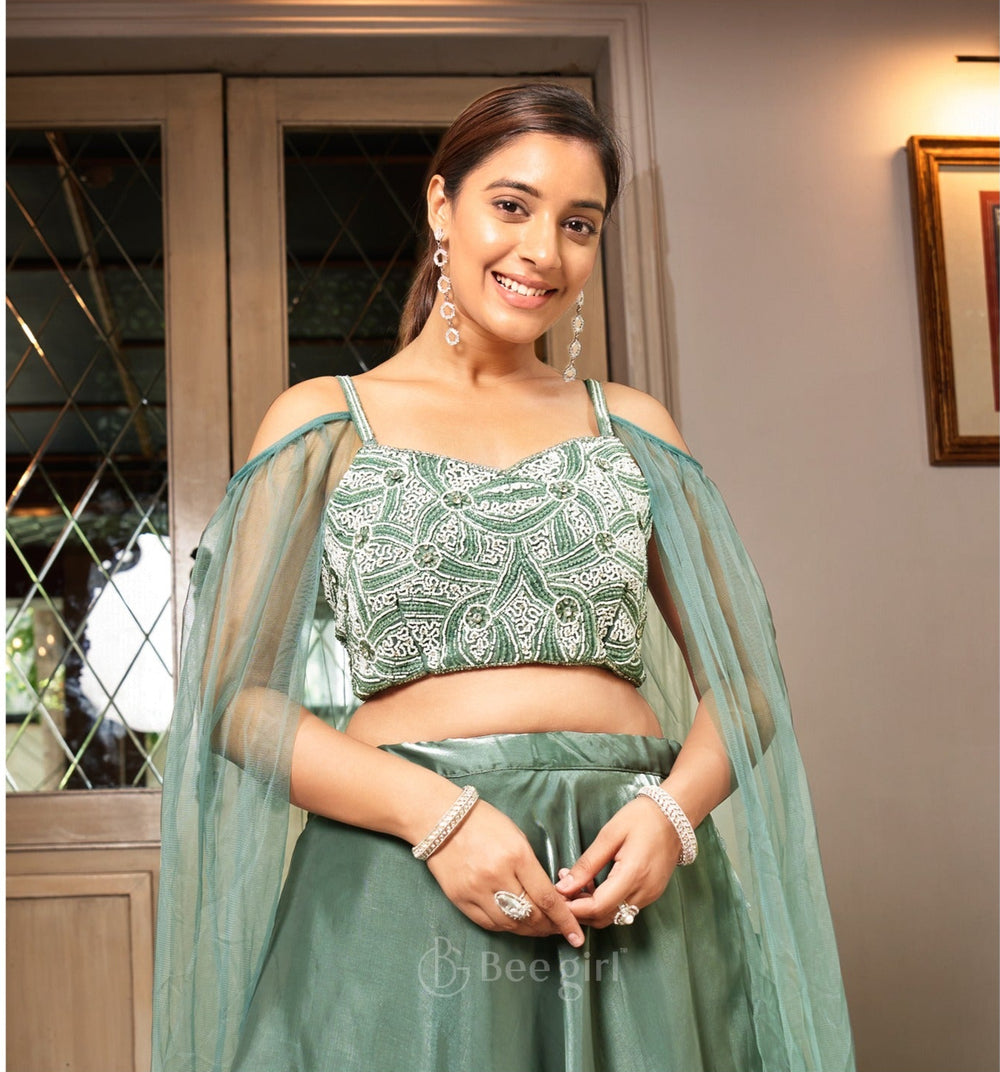 Soft Green Organza Lehenga Set